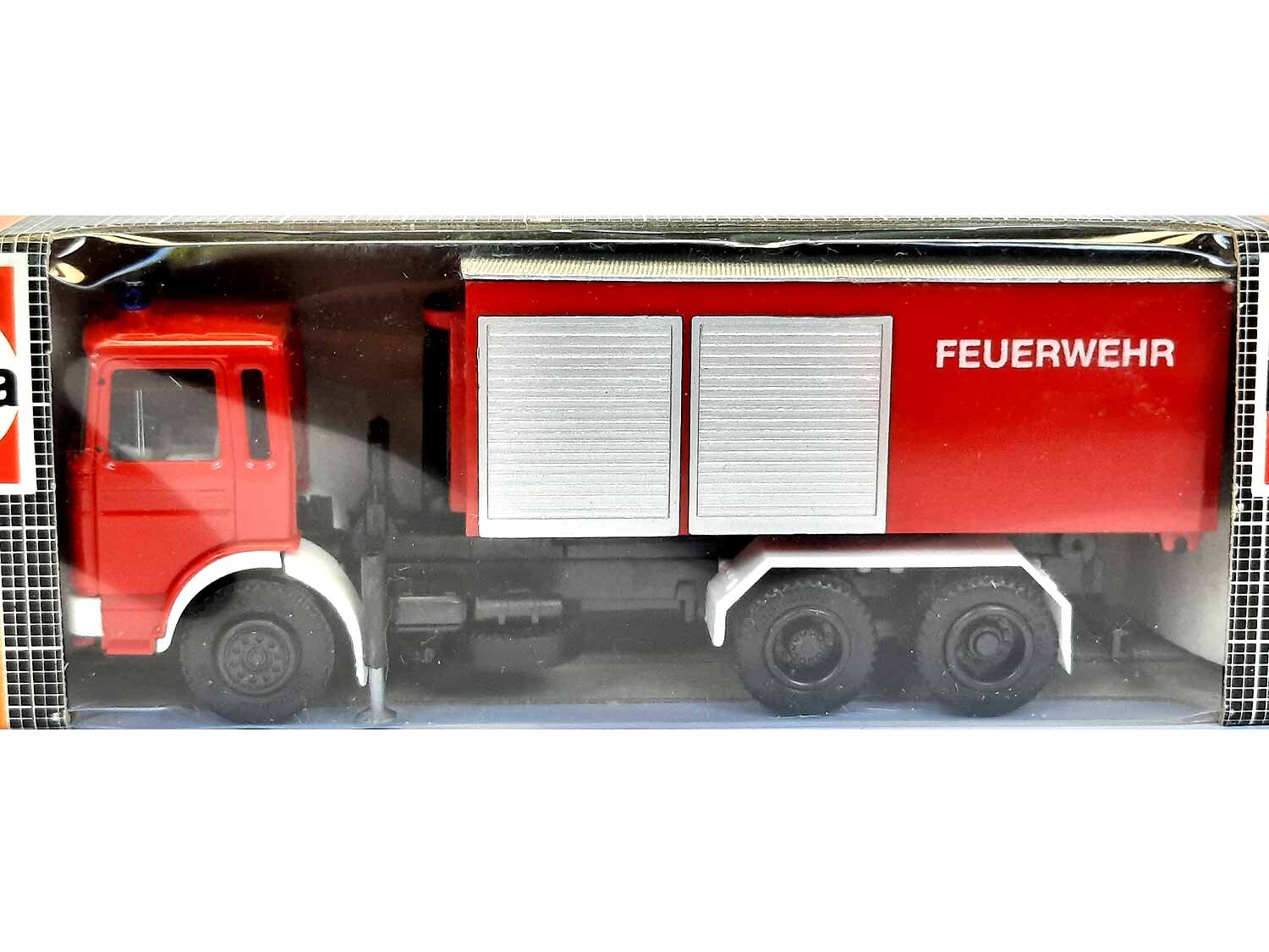 Kurzbeschreibung: MAN F8 Feuerwehr Abrollbehälter OVP | Gebrauchtes Modell aus der 8,99 Euro Collection Vitrinenmodell - Neuwertig, unbespielt, keine Kratzer etc, mit OVP (OVP mit Lagerspuren)