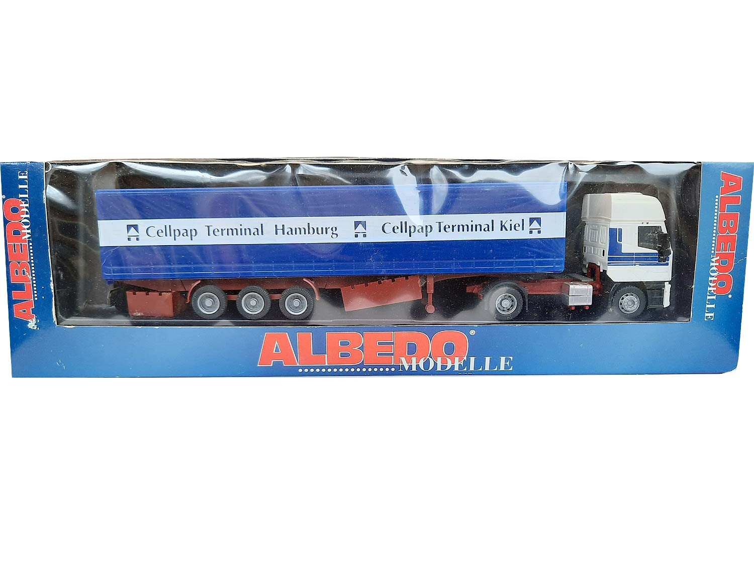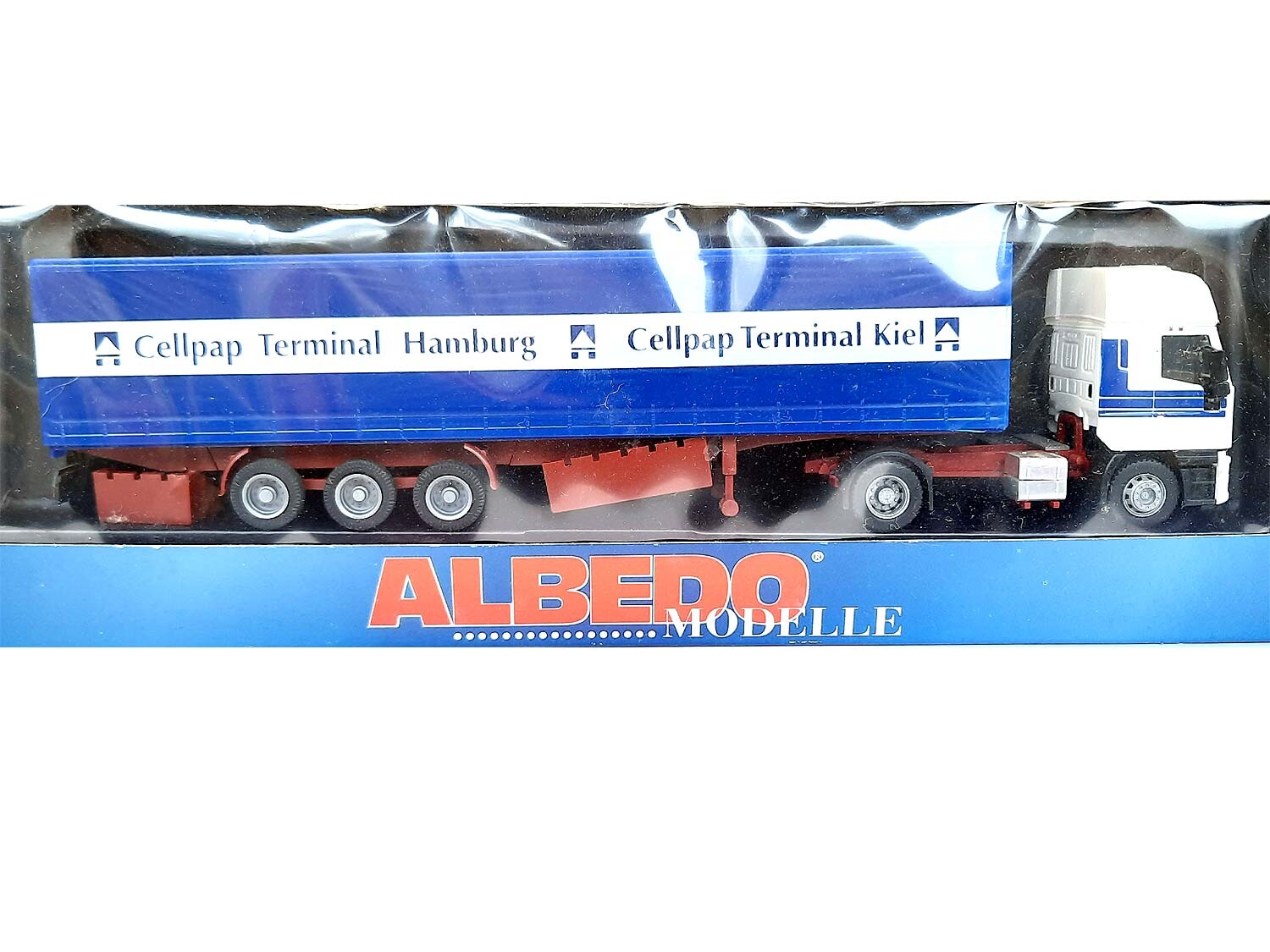 Kurzbeschreibung: Iveco Planen Sattelzug Cellpap Hamburg Kiel | Gebrauchtes Modell aus der 6,99 Euro Collection Vitrinenmodell - Neuwertig, unbespielt, keine Kratzer etc, mit OVP (OVP mit Preisschildern und Lagerspuren)