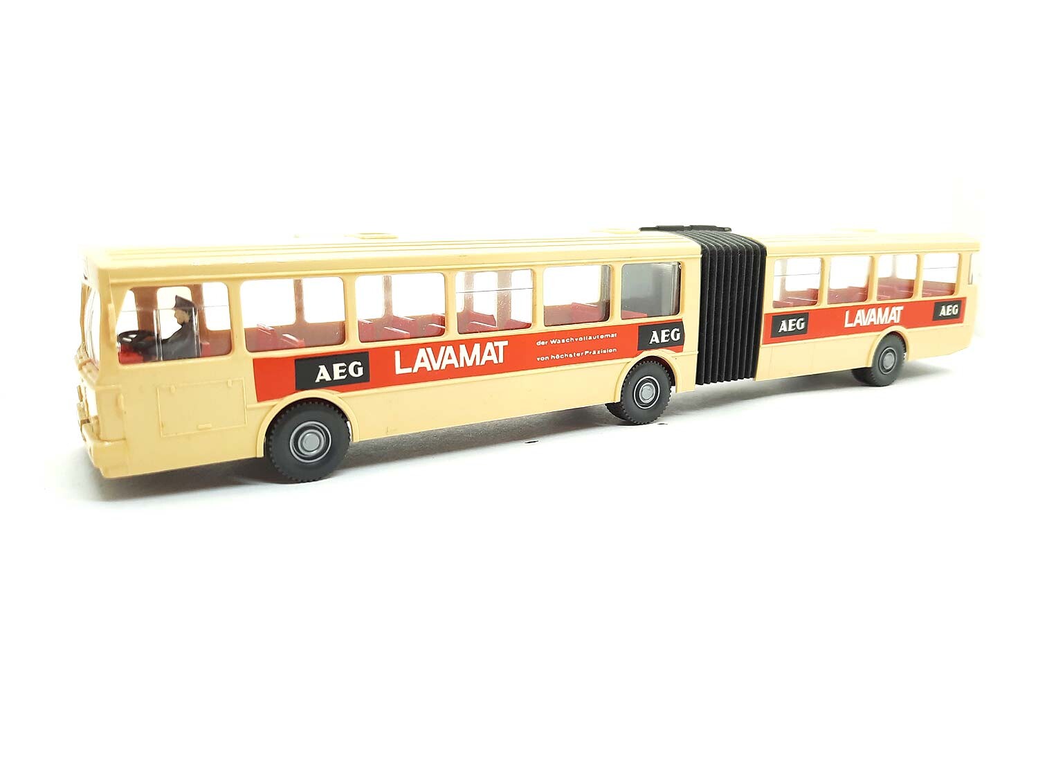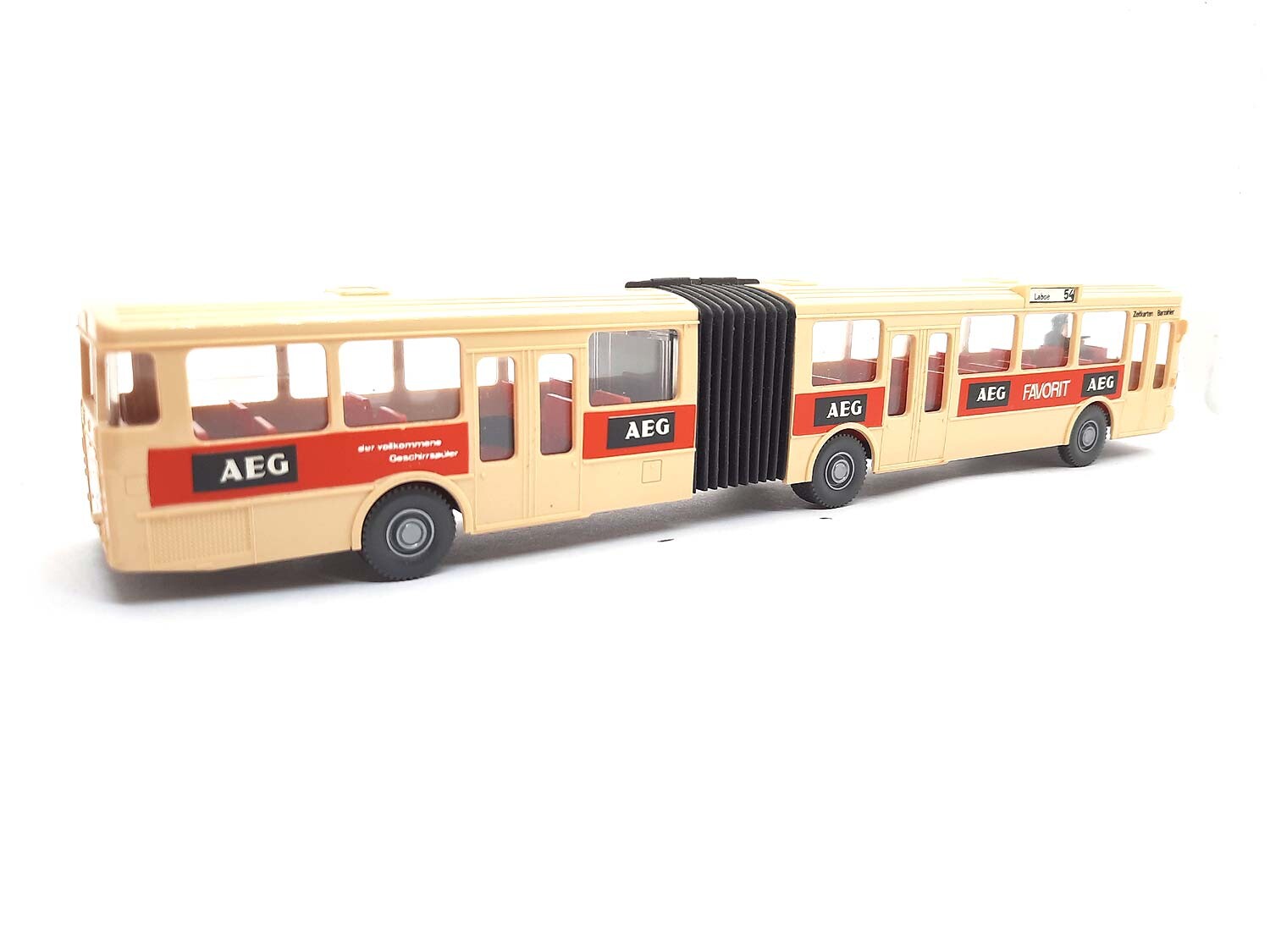 Kurzbeschreibung: Mercedes Benz O 305 Gelenkbus AEG | Gebrauchtes Modell aus der 1,99 Euro Collection mit kleinen Macken: Eigentlich sehr guter Zustand, aber Beschriftung (AEG) nicht original, Kennzeichen angebracht