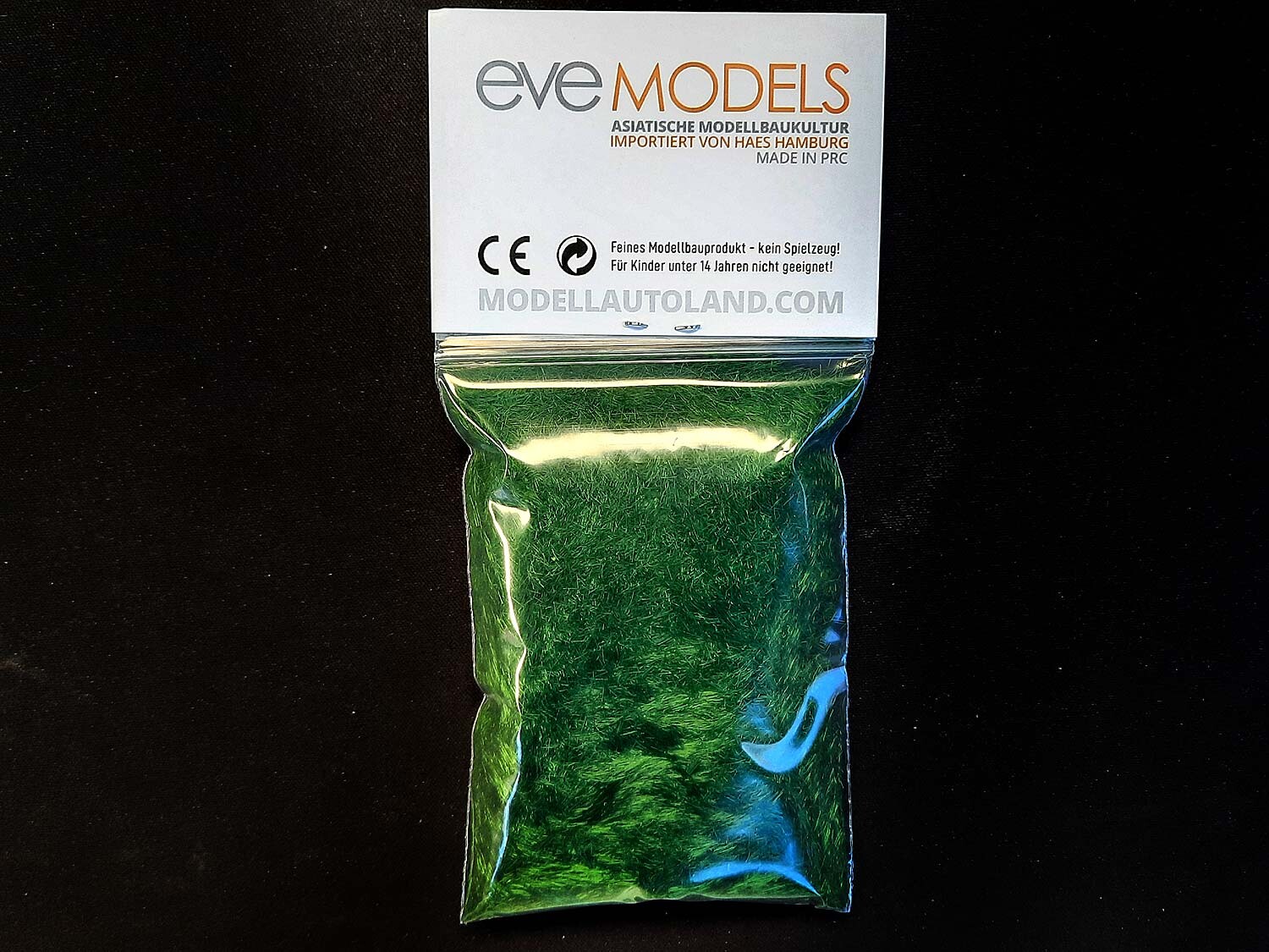 Gras Flock 4mm Wildgras Dunkelgrün 20 Gramm Beutel (Inhalt) - entspricht 100 Gramm 7,45 Euro.