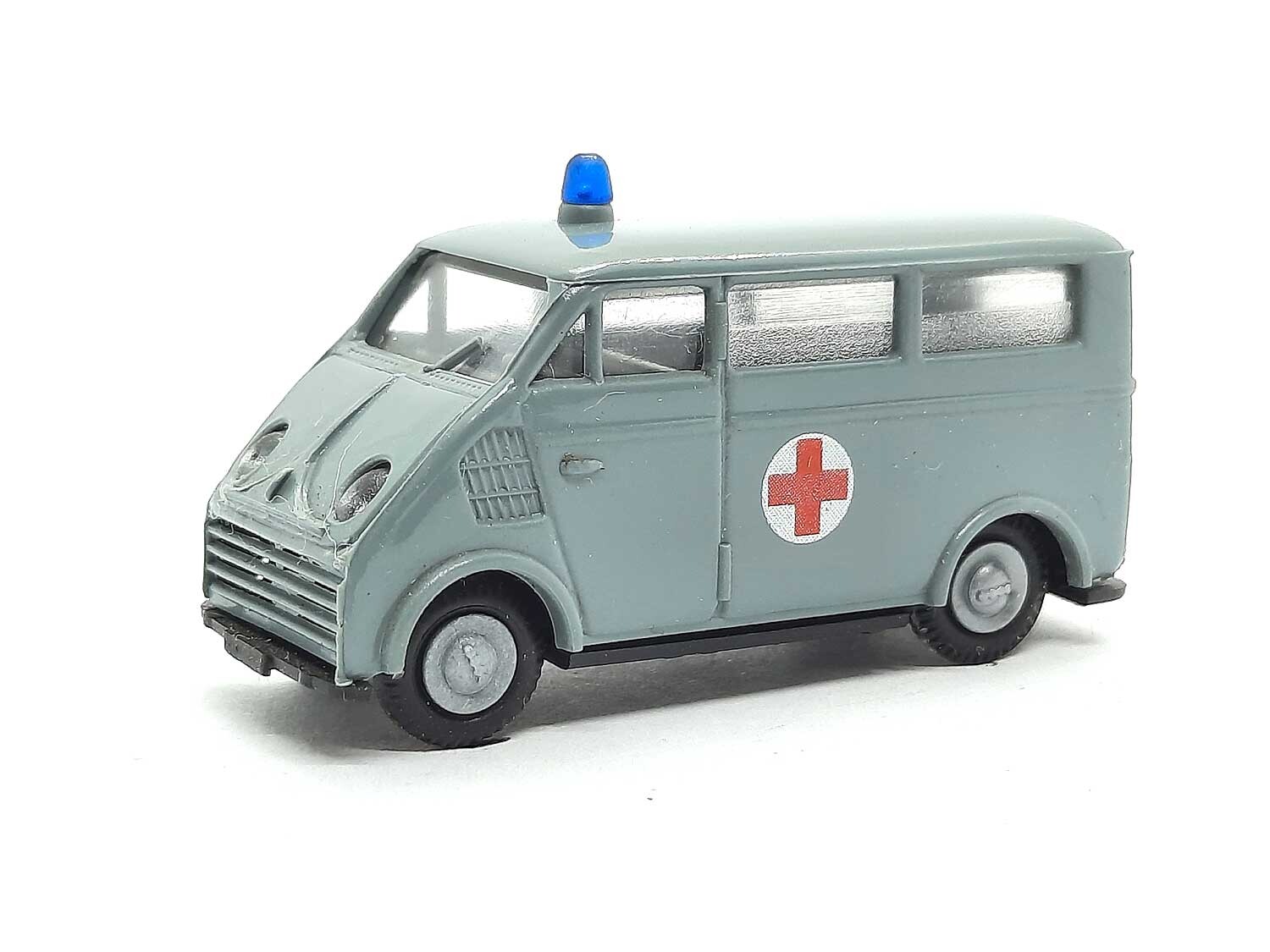 Kurzbeschreibung: DKW F89 L Schnelllaster DRK Krankenwagen | Gebrauchtes Modell aus der 1,99 Euro Collection mit kleinen Macken: Eigentlich guter Zustand, aber Scheibenwischer halb abgebrochen