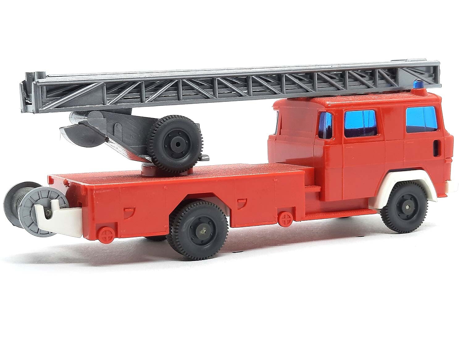 Kurzbeschreibung: Magirus Deutz Feuerwehr Drehleiter DLK | Gebrauchtes Modell aus der 1,99 Euro Collection mit kleinen Macken: Technisch guter Zustand, aber Modell stammt aus einem Modellbahn-Rückbau, entsprechend verstaubt / vergilbt / bespielt (Putzen und perfekt für Bah
