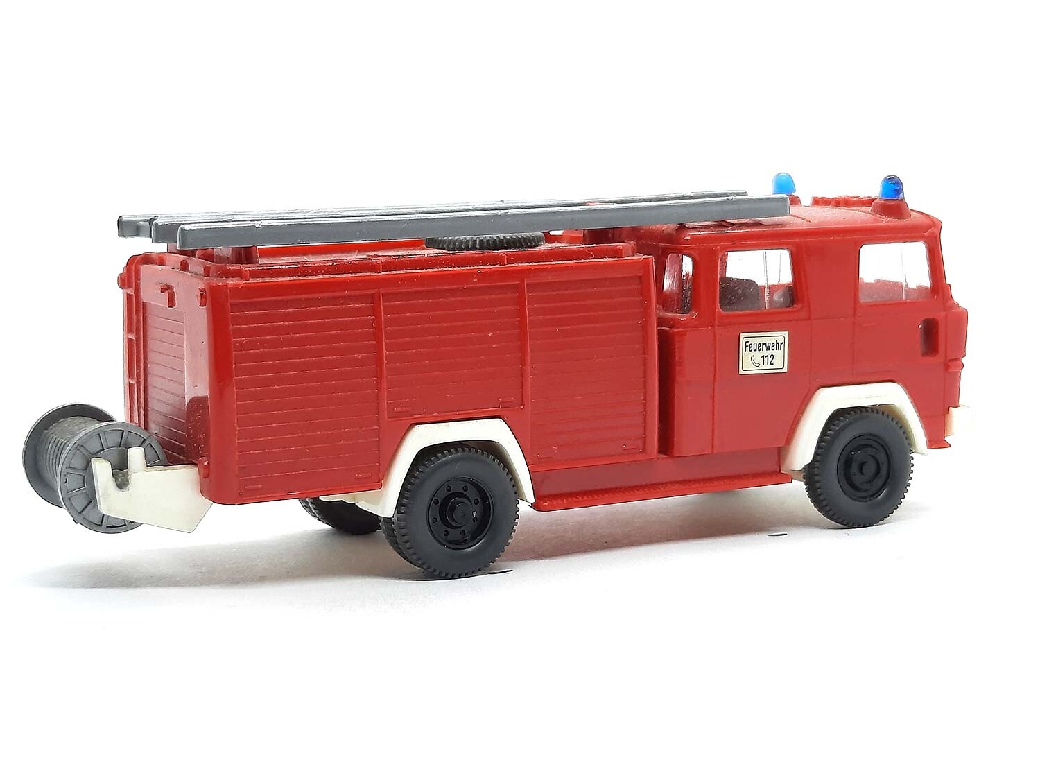 Kurzbeschreibung: Magirus Deutz Feuerwehr LF 16 Weissglas | Gebrauchtes Modell aus der 1,99 Euro Collection mit kleinen Macken: Technisch guter Zustand, aber Modell stammt aus einem Modellbahn-Rückbau, entsprechend verstaubt / vergilbt / bespielt (Putzen und perfekt für Ba