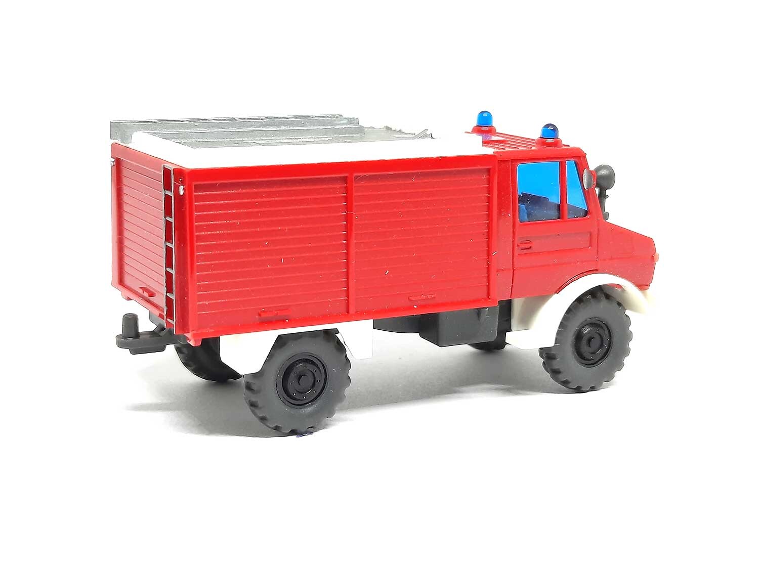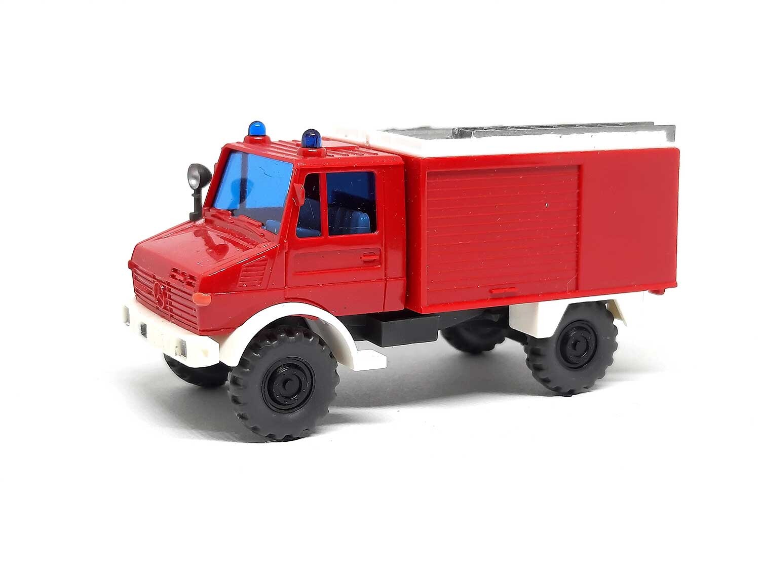Kurzbeschreibung: Mercedes Benz Unimog TLF 8 Feuerwehr Blauglas | Gebrauchtes Modell aus der 1,99 Euro Collection mit kleinen Macken: Eigentlich sehr guter Zustand und keine Fehlteile, aber Modell sehr fein gesupert