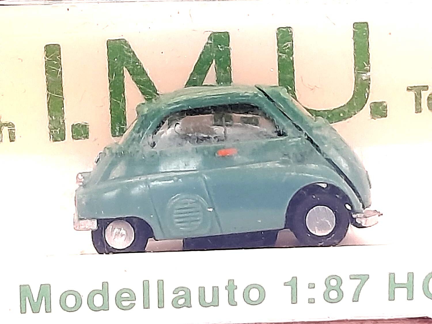 Kurzbeschreibung: BMW Isetta Lindgrün HighTech zu öffnende Tür OVP | Gebrauchtes Modell aus der 3,99 Euro Collection Vitrinenmodell - Neuwertig, unbespielt, keine Kratzer etc, mit OVP (OVP mit Lagerspuren und Aufkleber, stark vergilbt)