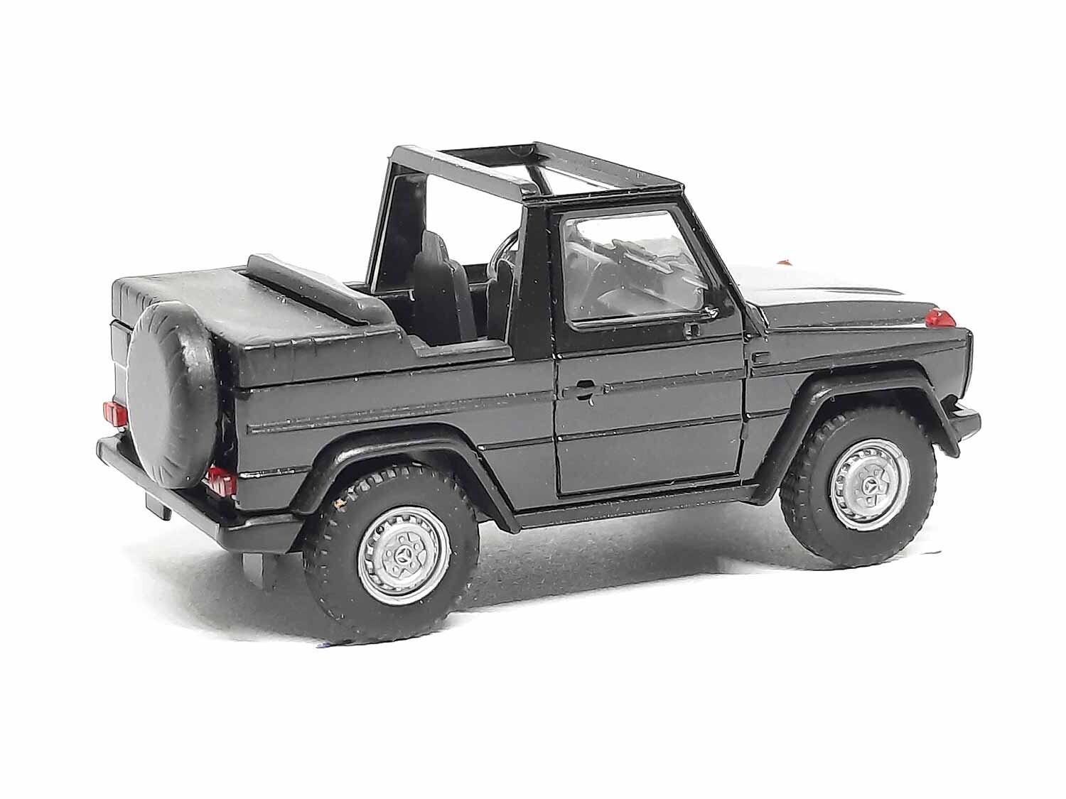 Kurzbeschreibung: Mercedes Benz G-Klasse Cabrio Schwarz | Gebrauchtes Modell aus der 4,99 Euro Collection Vitrinenmodell - Neuwertig, unbespielt, keine Kratzer etc, ohne OVP, ohne Anbauspiegel (waren nie angebracht) Hersteller: Herpa
