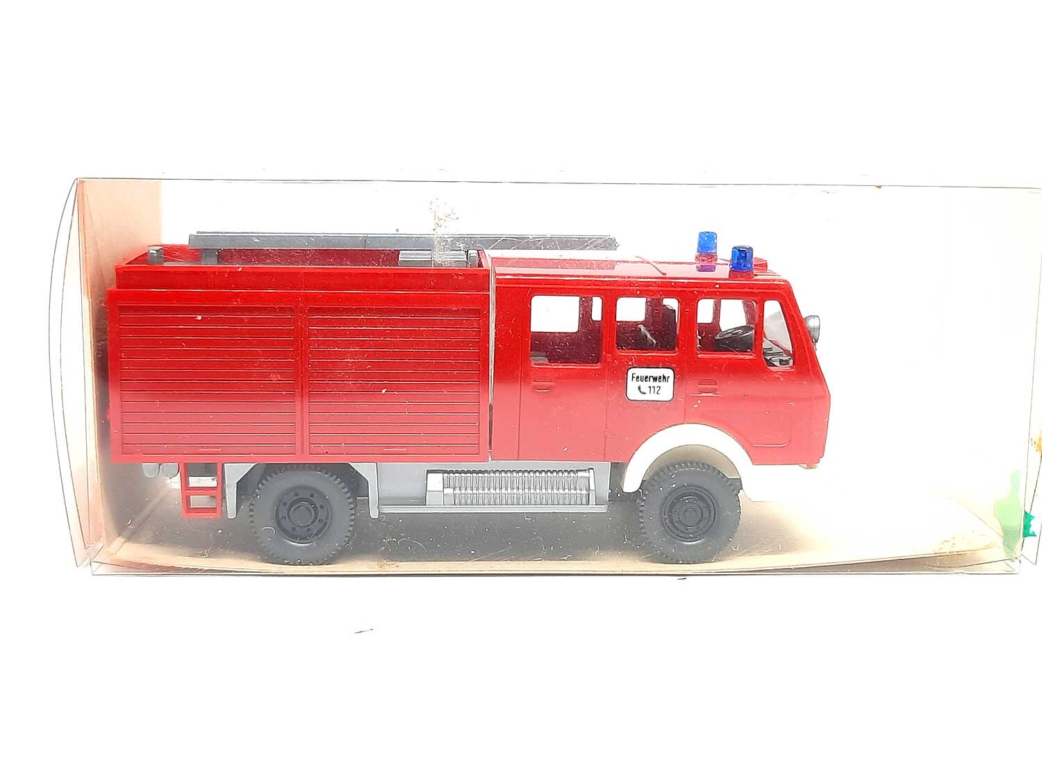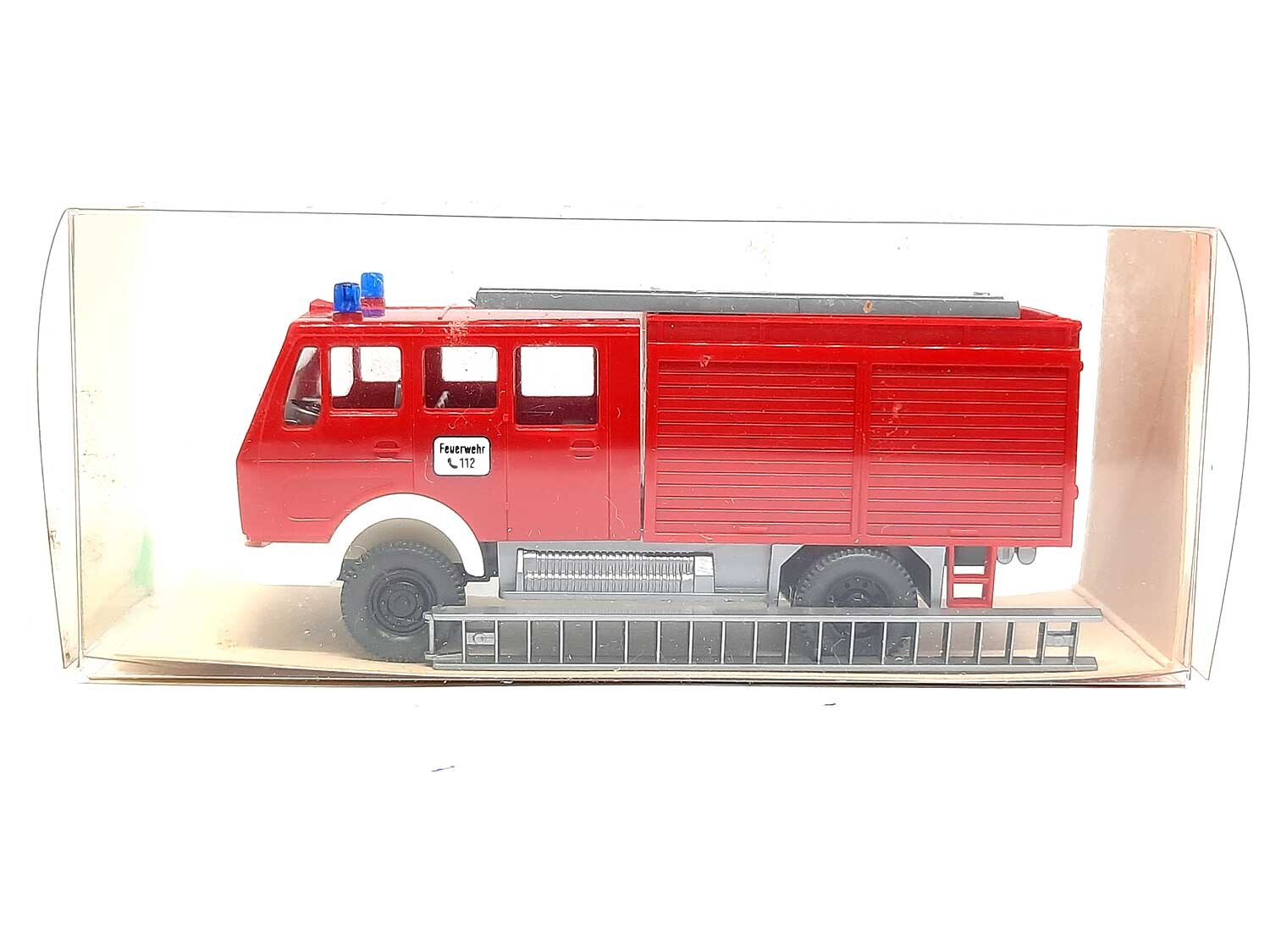 Kurzbeschreibung: Mercedes Benz NG Feuerwehr LF 16 OVP | Gebrauchtes Modell aus der 4,99 Euro Collection Vitrinenmodell - Neuwertig, unbespielt, keine Kratzer etc, mit OVP (OVP mit Lagerspuren), mittlere Version mit Weissglas