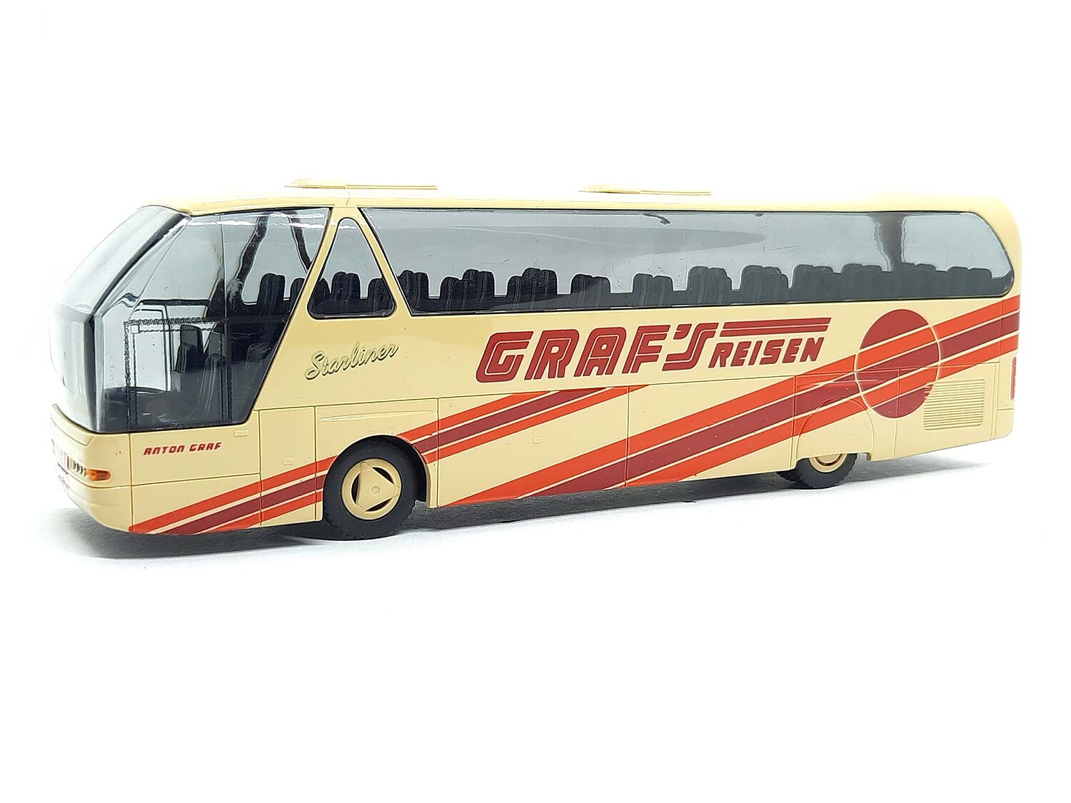 Kurzbeschreibung: Neoplan Starliner Reisebus Graf Reisen | Gebrauchtes Modell aus der 4,99 Euro Collection Vitrinenmodell - Neuwertig, unbespielt, keine Kratzer etc, ohne OVP, ohne Anbauspiegel (waren nie angebracht)